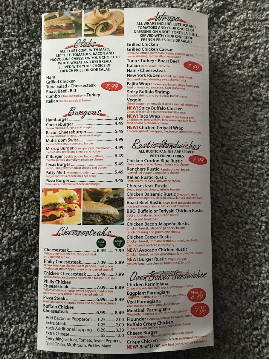If you're craving a sandwich, the options are endless, with the Crab Cake with Fries, Chicken Gyro with Fries, and BLT Deli offering delicious, satisfying bites. For those who prefer subs, you can opt for a Cheeseburger Hot Sub or go for a classic Meatball Parm or Eggplant Parm.